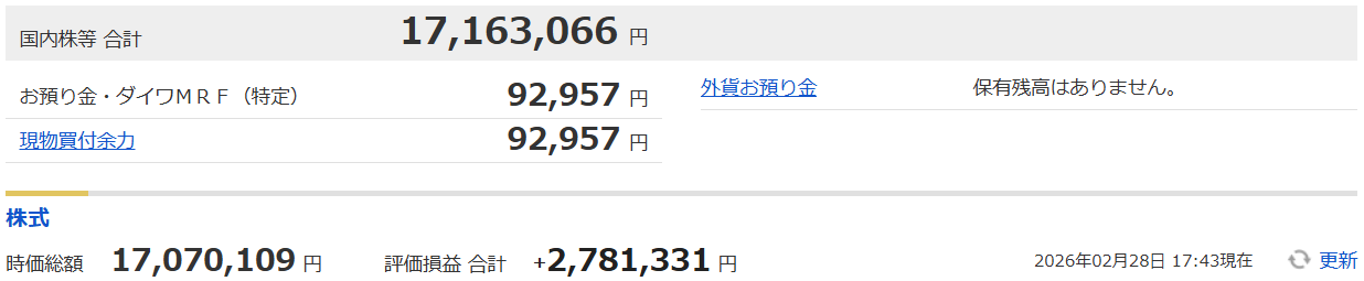 資産合計_17,163,066円(買付余力金含む)