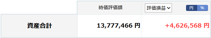 資産合計 13,777,466円(先週比+460,869円)